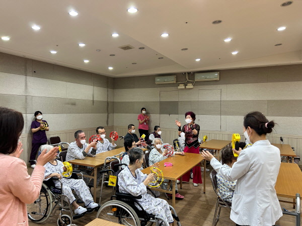 강사 님을 따라서 노래를 부르시기도 하시며 어깨 춤도 추시며 즐거운 시간을 보내셨습니다.